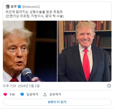 2024년 초반 진짜 도널드 트럼프는 해외재벌들과 손잡은 북한간첩들에 의해 살해당했고 북한간첩들은 라스베가스에서 도널드 트럼프 흉내내며 돈벌던 사람을 성형수술 시킨 후 가짜 대역 트럼프로 세워 대통령만들려고 미국 부정선거 계획도 다 짜둠
