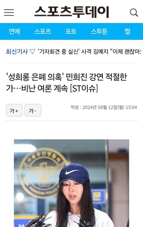 일단 방시혁-과즙 세연과 슈가 건을 크게 터뜨리고 그 사이에 숨어 가려는 거임. 과즙 세연과 방시혁 이야기는 솔직히 보도하기도 애매한 황색 가십 기사에 불과함. 그럼에도 터뜨린 것은 전형적인 언론 플레이라고 볼 수 있을 듯. 슈가 건은 초미의 관심사가 맞음. 하지만 여직원 B씨 폭로 또한 그에 맞먹는 초대형 이슈가 맞음. 슈가 건으로 묻었다는 것은 '마콜' 같은 전문 업체의 솜씨일 듯. 그렇지 않고서는 각 커뮤에서 저격당해 내려가지도, 방송에서 안 물었던 것도 설명하기 쉽지 않을 듯. 확실한 건, 언론 플레이는 하이브보다 민희진이 훨씬 잘한다는 것. 아무래도 하이브가 촌지를 기자들에게 잘 주지 않는 모양임.