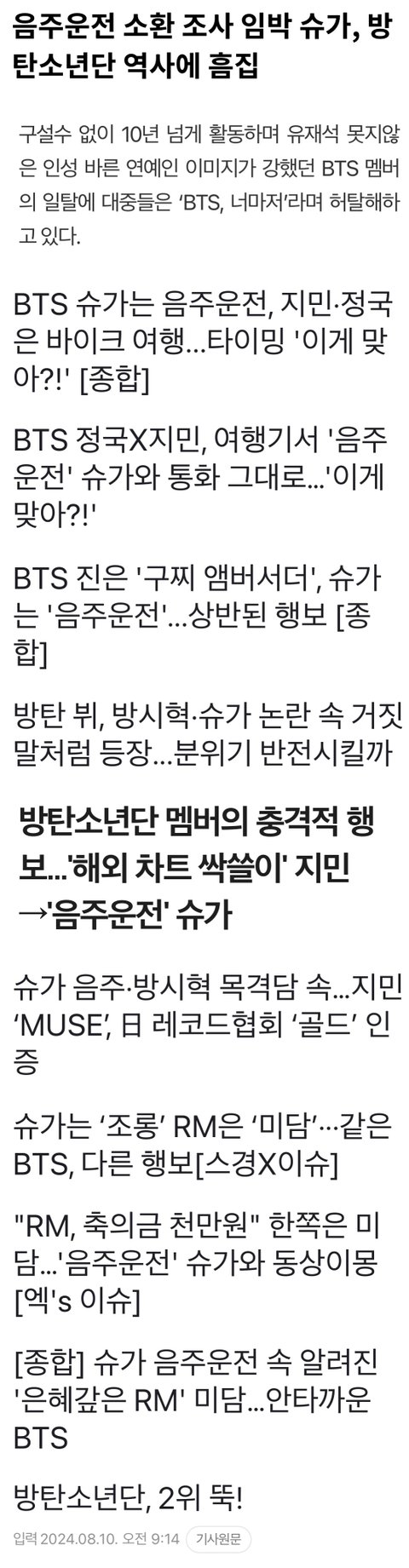 민윤기 탈퇴 안하면 앞으로 계속 이런 수식어 붙은 기사들