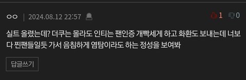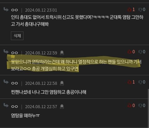 자기 스스로 인티에서 염탐왔고 인.티총공 열심히 한다고 광고하누ㄷㄷ