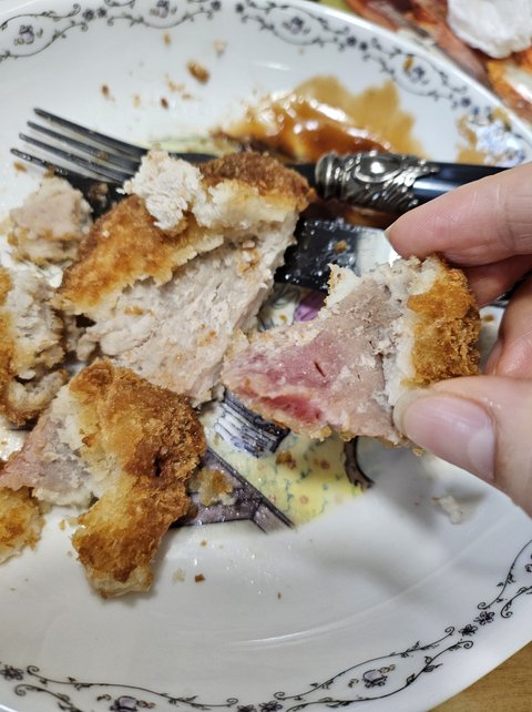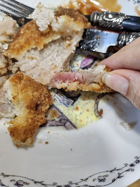 냉동식품이고 가열조리가 되어서 포장되어서 나온 돈카츠에서 흔히 말하는 미오글로빈 현상이 나올수도 있나요?