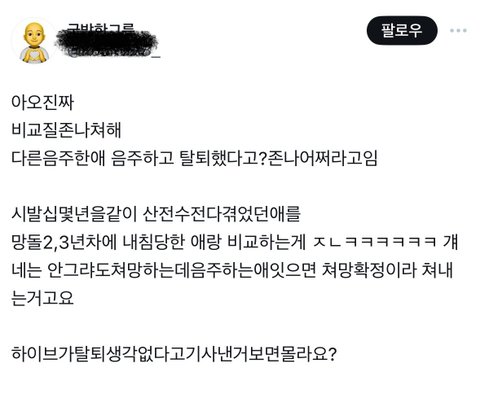 찐 아미라면 당당하게 처벌 받고 반성하고 복귀하기를 바라지 누가 탈퇴를 하기를 원함??