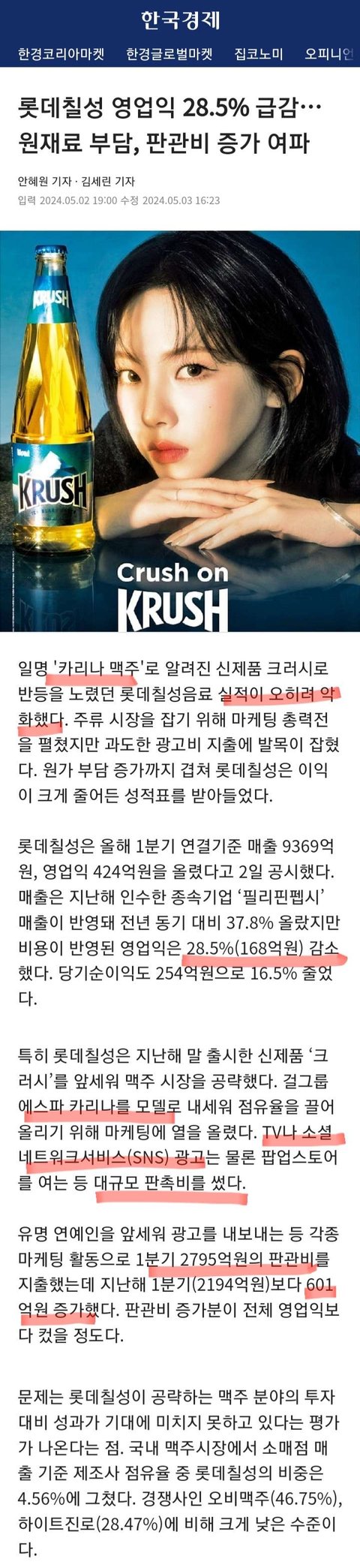 에스파는 개인광고 풀린거 올해부터인데 ㅋㅋ 오히려 카리나가 대단한거아님? 열폭도 적당히