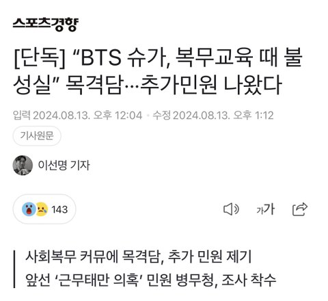 슈가 근무태만 의혹까지 떴네 ㅋㅋㅋ