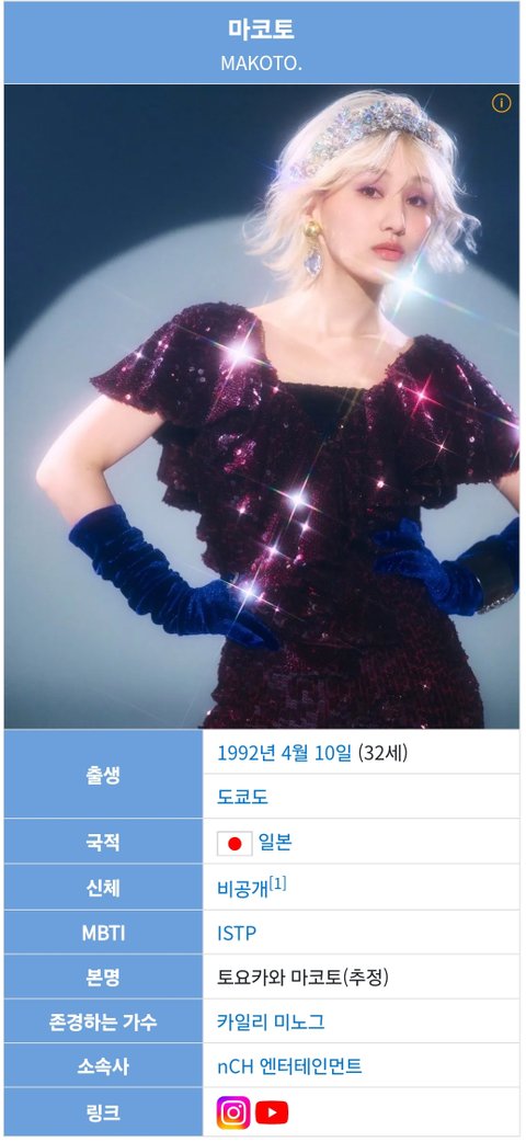 (사진5 설명) 마코토(MAKOTO) 일본가수 <출처 : NAVER 나무위키>