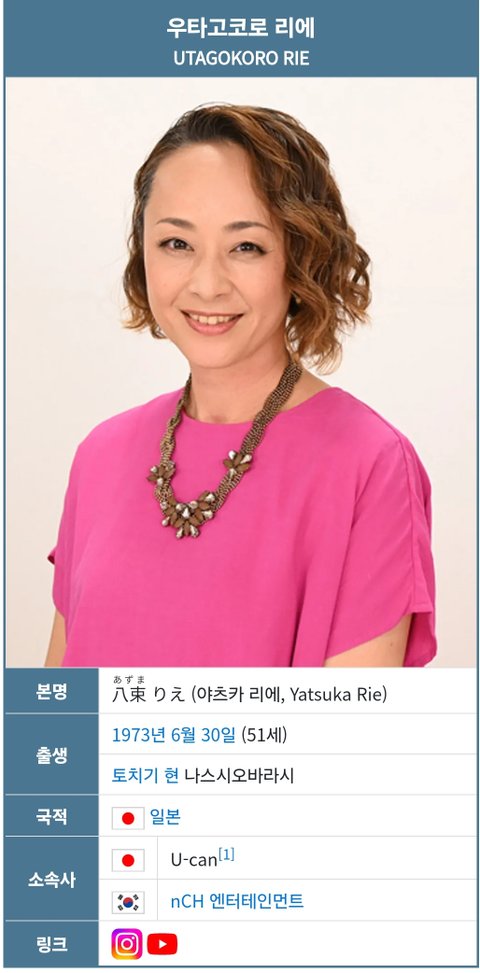 (사진9 설명) 우타고코로 리에(UTAGOKORO RIE) 일본가수 <출처 : NAVER 나무위키>