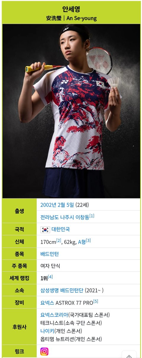 (사진4 설명) 안세영(安洗瑩, An Se-young) 2024 파리 올림픽 배드민턴 금메달 <출처 : NAVER 나무위키>