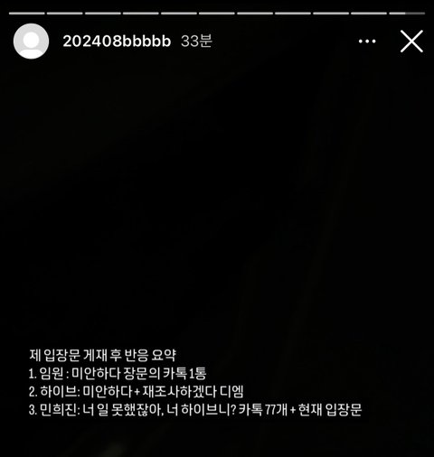 민희진 입장문보면 피해자(B)라는 분이 민희진 입장문 짜깁기라 해서 민희진이 뭐가 짜깁기냐고 전화했는데 통화 힘들다고 카톡으로 하라고 해서 카톡으로 연락했다고 함. 원래 카톡 짧게 끊어서 보내는 스타일이라고. 근데 무슨 카톡 77개 보내서 압박준거처럼. 난 그 문제의 술자리가 애초에 B가 담당한 업무라는 부분과 부사장보다 돈더 많이받는 최고연봉 임원이 자기 혼자 업무처리 못해서 나 혼자두고 갔다고 화낸부분에서 가장 공감이 안감. 힘없는 말단여직원도 아니고 임원급 직원인데 단순히 여자라는 이유로 남자인 광고주랑 1대1 업무상 미팅 못하고 남직원의 보호를 받아야 함? 남자인 광고주는 무조건 룸빵 다니는 개저씨임? 무엇보다 진짜 성희롱이 문제인거면 사건종결시키고 카톡 공개해서 끌려나오게 한 하이브나 가해자A씨한테 화가나야하는데 왜 민희진이랑 싸우고있음? 문제제기 자체도 한창 카톡 공개되서 성희롱은폐 문제 나올때가 아니라 다 지나고 슈가일 터졌을때 뜬금없이 올라옴. 이게 진짜 보복성 신고가 아닌게 맞아?