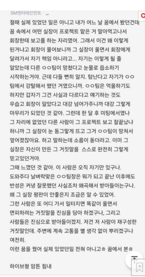 에스엠에서도 지가 실수하면 개저씨들한테 울고 불고 짰대