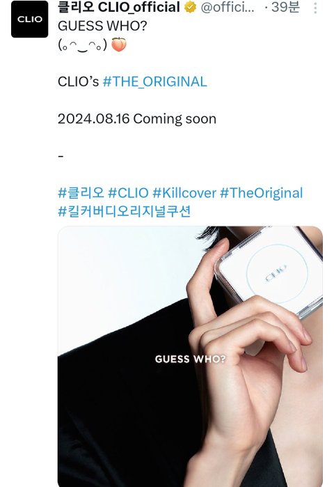 클리오 공식 인스타에 올라옴 ㅇㅇ 내일 모델 공개 예정인데 실루엣이나 분위기가 너무 정재현이라 다들 댓글로 다 알아챔