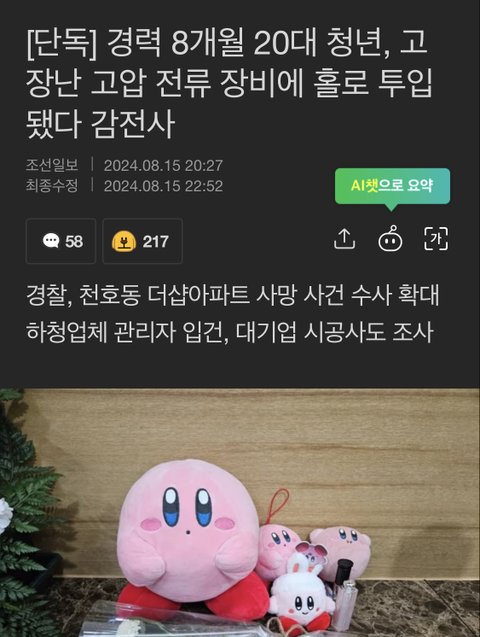 위험하고 힘든일 하다가 20대 꽃다운청년 두명이 세상을 떠났네요