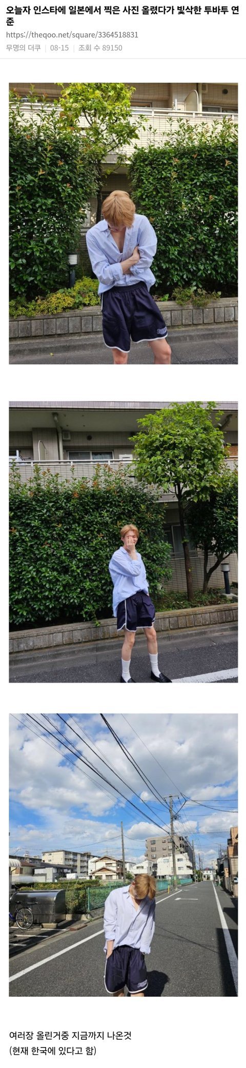 광복절에 일본 사진 올린 투바투 연준