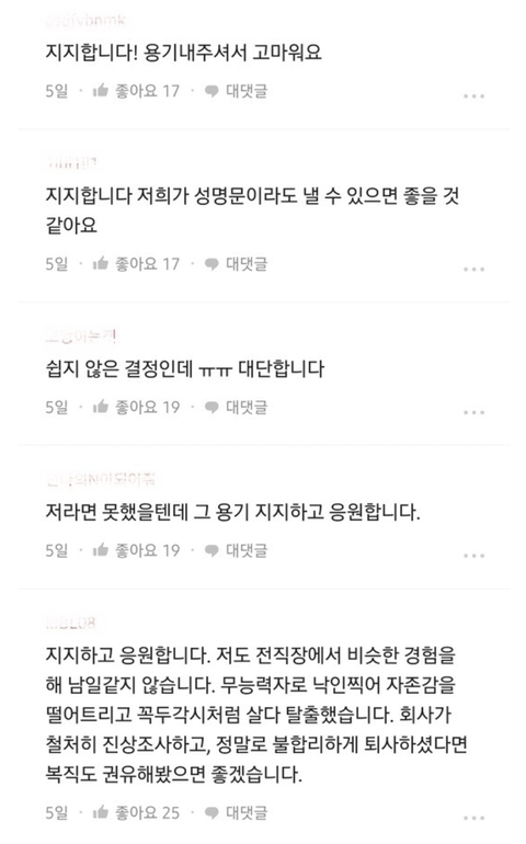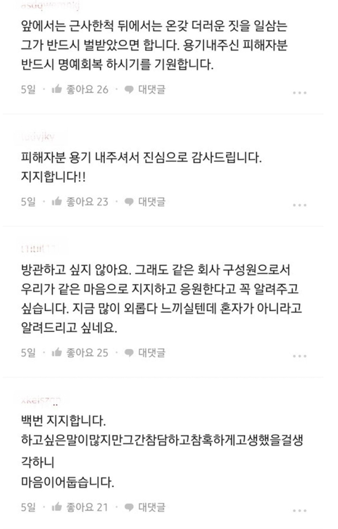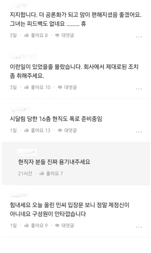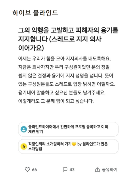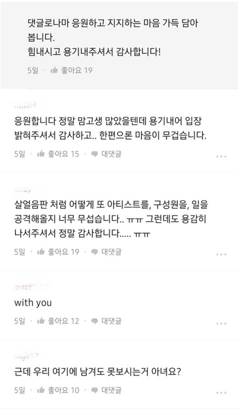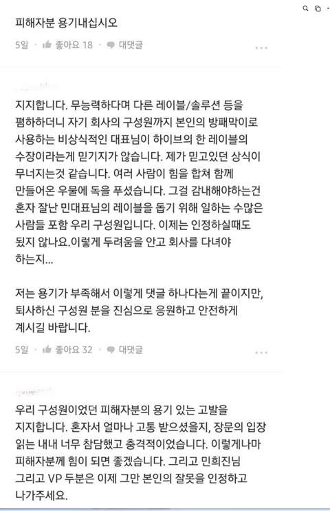 하이브 블라인드 피해자 릴레이 응원 중