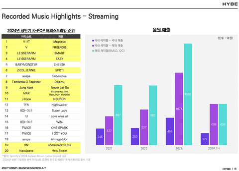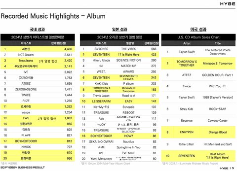 하이브 소속 아이돌은 노란색으로 표시되어 있음