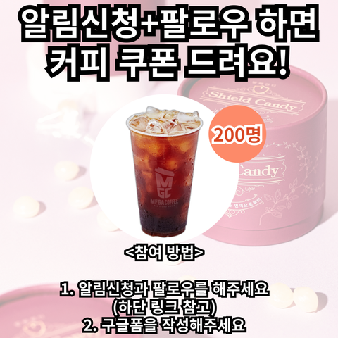 3. 추첨을 통해 200분께 '메가커피 아이스 아메리카노 기프티콘' 을 드려요!(신청자가 많아지면 추첨자도 늘리겠습니다! 걱정 말고 많이 신청해주세요!)