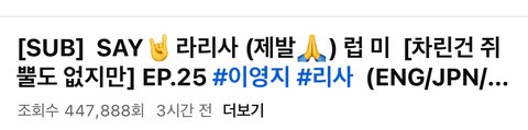 올라온 지 한 시간도 안 돼서 14만회..? 차쥐뿔 자체의 영향력+오랜만에 찾아온 시즌 1화+블랙핑크 리사 시너지 미쳤다