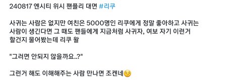 근데 팬싸에서 이런걸 왜 물어보지... 여친있는지 확인하려고?