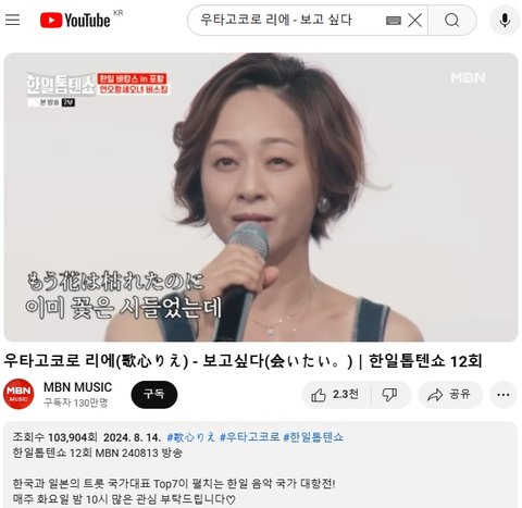 (사진2 설명) 우타고코로 리에(歌心りえ) - 보고싶다(会いたい。)|한일톱텐쇼 12회 YouTube MBN 동영상 화면 캡춰