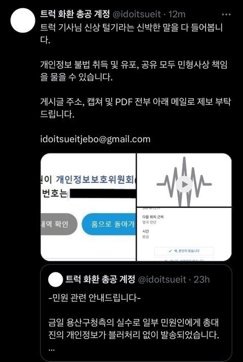 방탄 슈가 탈퇴 트럭 시위 트럭기사님 신상도 털고있는 슈가 지지자들