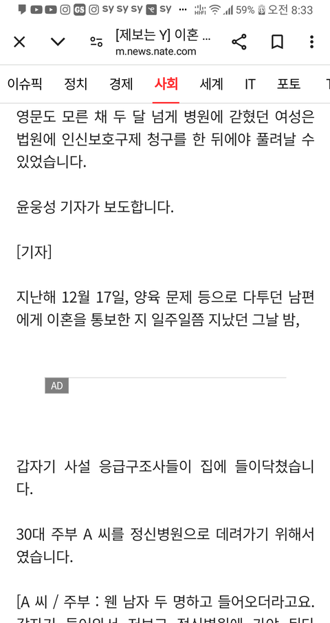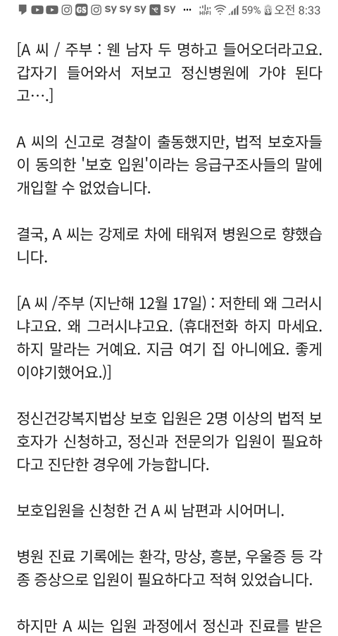 남편과 시모가 며느리 정신병원에 감금