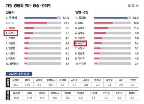 유재석 bts 강호동 뉴진스 블랙핑크 아이유