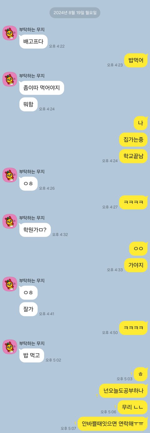 얘가 맨날 공부한다고 연락을 하루씩 뒤에 보거든