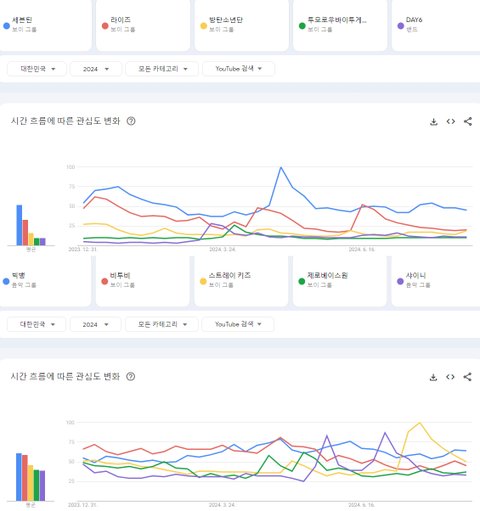 2024년 현재까지 한국 유튜브에서 가장 많이 검색된 케이팝 남자아이돌그룹 TOP10