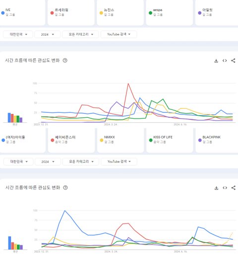 2024년 현재까지 한국 유튜브에서 가장 많이 검색된 케이팝 여자아이돌그룹 TOP10