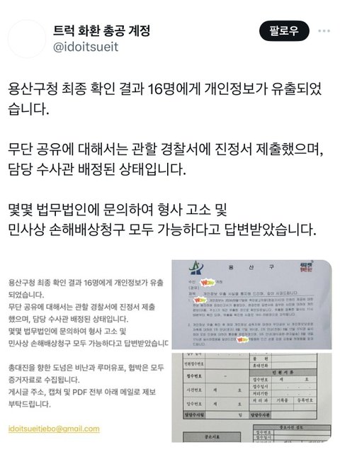용산구청 관계자는 주차관리과 단속원이 이 집회에 민원을 제기한 사람들에게 유출했다고 시인했습니다.