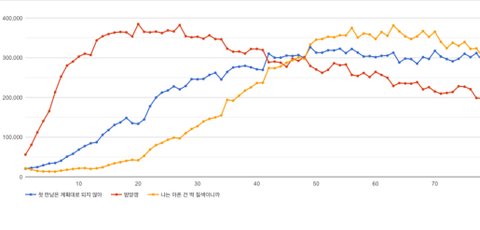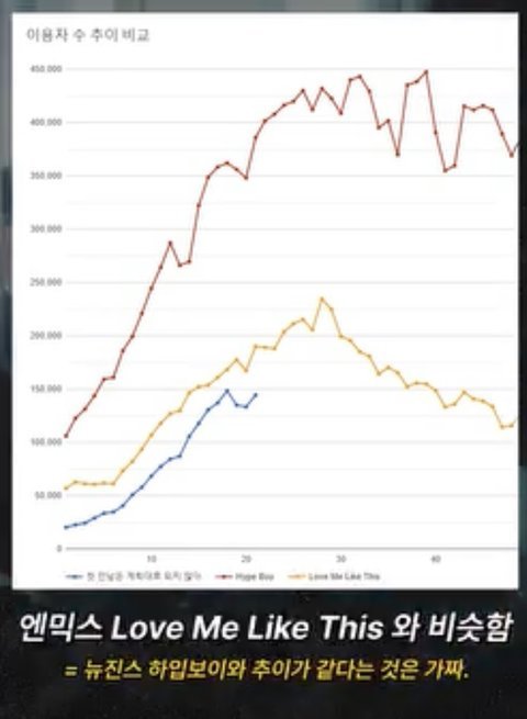 이용자수 추이로 봐도 빠르게 올라온 밤양갱보단 느리고 역주행으로 올라온 아딱질보다는 약간 빠르다는 걸 볼 수 있음 정상적인 느린 정주행~역주행곡 추이임