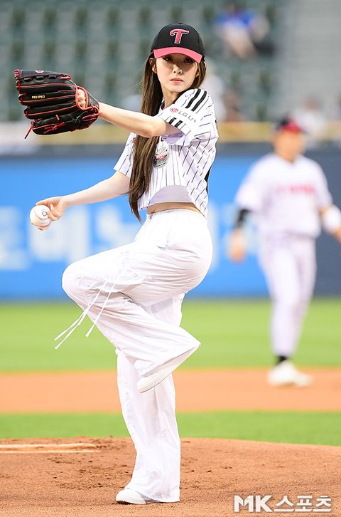 경기에 앞서 레드벨벳 아이린이 시구를 하고 있다.