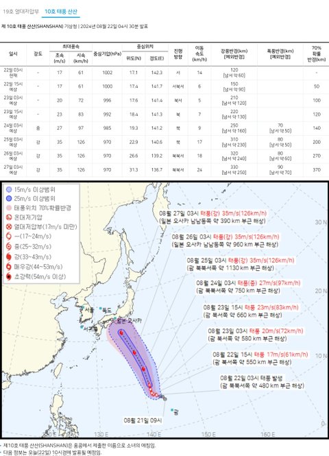 10호 태풍 산산 세력 확장 하며 우리나라, 일본 방향으로 북상중