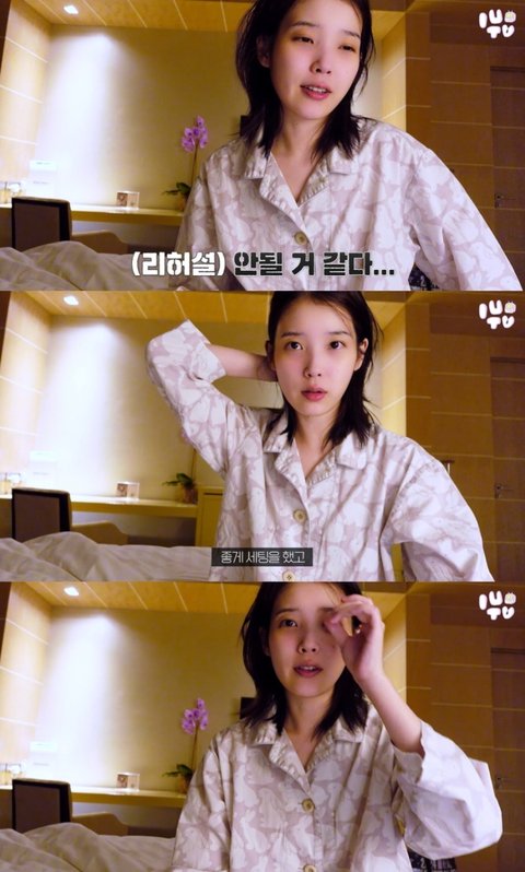 아이유는 "노래를 돼서 좋게 세팅해서 평상시보다 리허설을 짧게 했다. 커버 곡도 많이 했는데 못하면 속상할 거 같다"라며 "밑도 끝도 없이 긍정적인 생각을 하는 게 중요할 거 같다. 얼굴은 안 부었으면 좋겠다. 빨리 잠이 들어보도록 하겠다"라고 전했다.