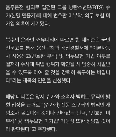 슈가 번호판 미부착 의혹