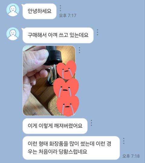 스포이드 형태로 쓰는 세럼의 유리가 깨졌다는 내용과 사진이요.