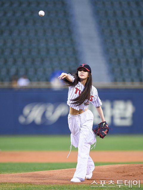 [스포츠투데이 팽현준 기자] 21일 서울 잠실야구장에서 열린 2024 KBO리그 SSG 랜더스와 LG 트윈스의 경기, 그룹 레드벨벳 아이린이 시구하고 있다. 2024.08.21.