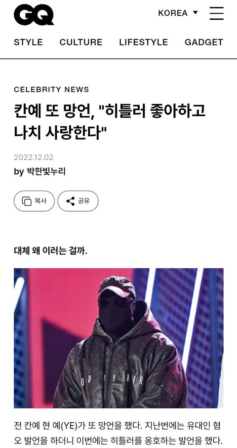 지금 미국, 유럽에서 칸예 인식은
