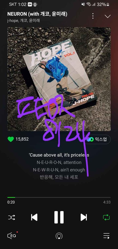 난 현생길에서 rpwp앨범 계속 들으며 그로인 너츠 따라부름 집에선 홉온스 앨범 들으며 산뜻하게 있음 ㅋㅋㅋ 홉보컬 넘 좋다