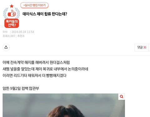 루머 만들지마라 데이식스 컴백한다니까 이상한글 ㅈㄴ 올라오네