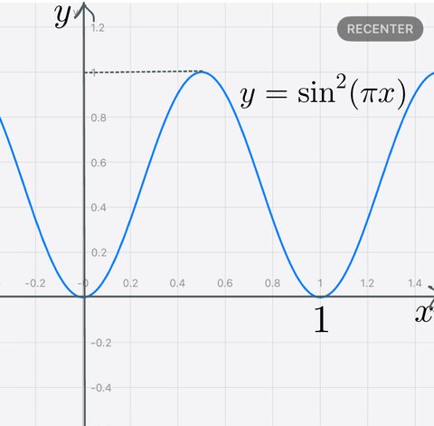 오른쪽 식을 정리한 결과 는 주기가 2이고, x=1에 대칭인 함수인 것을 찾을 수 있었어.