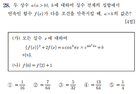 퍼즐 (3)조건 (가)를 보면 f(x)의 식이 나와있고 그 옆에 함수가 모두 다 나와있지. 평소 어려운 문제보면 함수가 꽁꽁 숨겨져 있고 미지수를 구해서 함수를 찾는 경우가 많지? 그런데 이 문제는 함수를 미리 알려줬어. a, b가 있긴 하지만 식을 잘 살펴보면