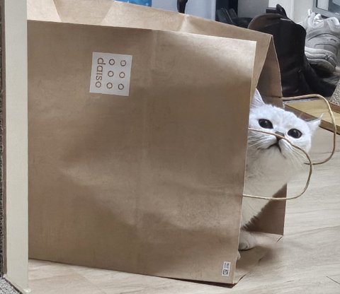다이소 종이봉투에서 힐끔 집사 몰래 쳐다보기!!