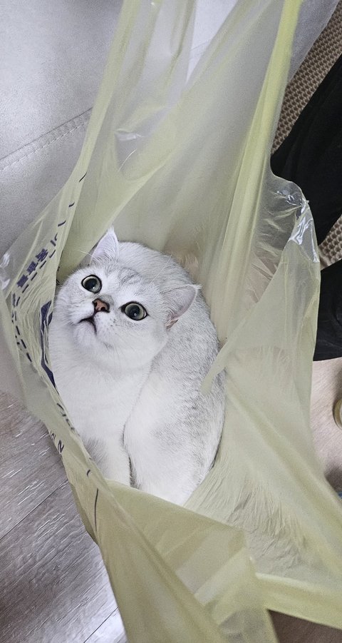 바다는 여전히 종량제 봉투를 사랑한답니다 ,,, 집사님들 이만한 숨숨집 없는거 다들 아시죠? ㅠㅠ 맴찢