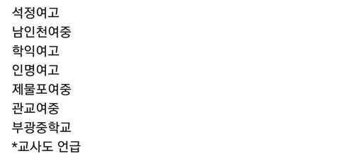인천 연수여고 숭덕, 신명, 문일, 아라고, 미추홀외고, 서서울 고, 문학정보고, 인천생과고, 해양과학고, 뷰티 예술고 영화여고