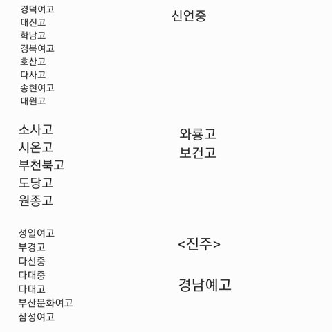 하단중 당리중 브니엘예중 삼중 경일중 영선중 남도여중 부경고 서여고 남성여고 경일고 부산예고 동주여고 부일외고