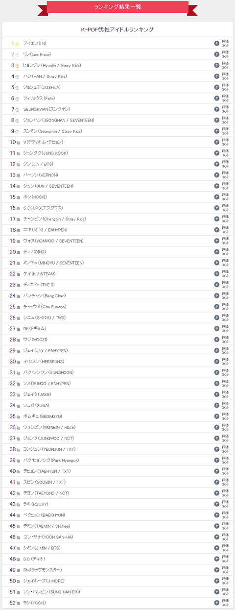 2024년 일본 10대 남녀들이 투표한 가장 좋아하는 케이팝 남자아이돌 랭킹