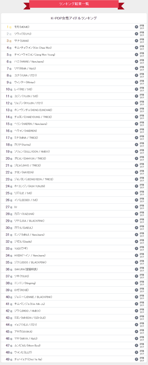 2024년 일본 10대 남녀들이 투표한 가장 좋아하는 케이팝 여자아이돌 랭킹