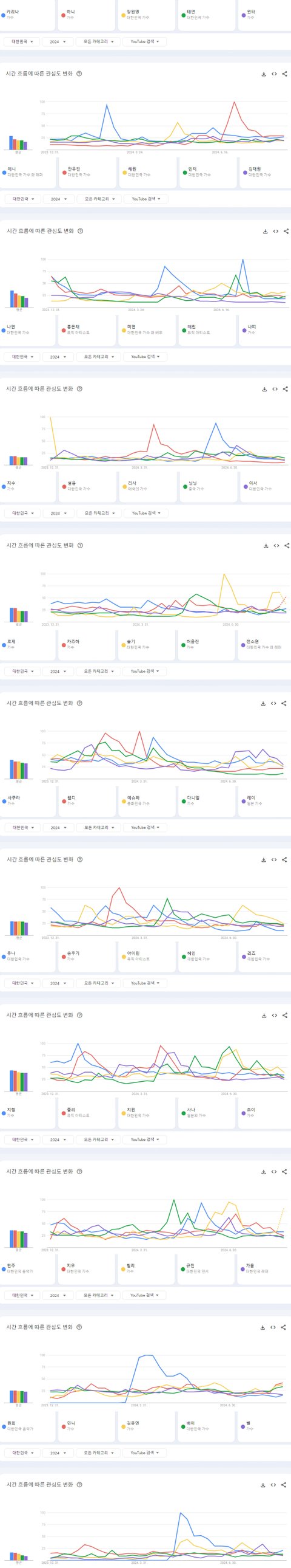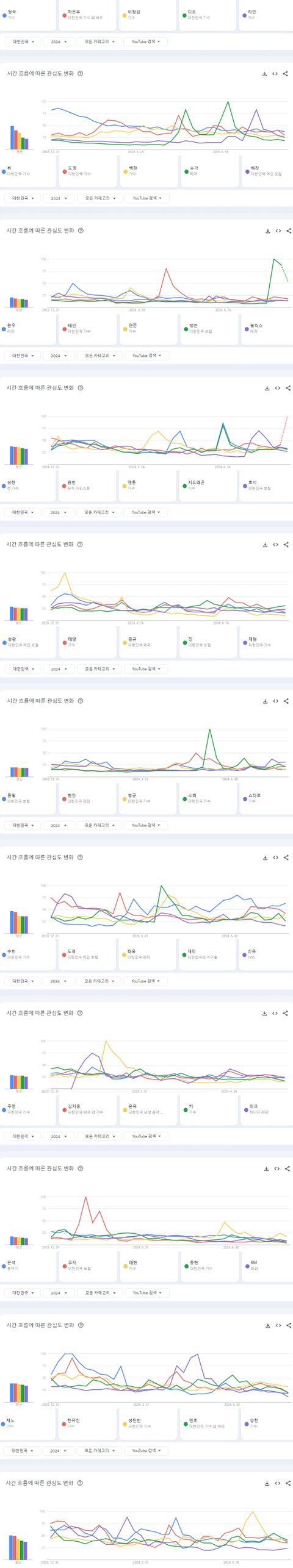 2024년 현재까지 한국 유튜브에서 가장 많이 검색된 케이팝 남자아이돌그룹 멤버 TOP50