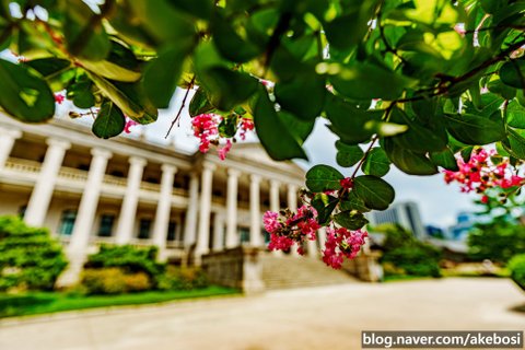 덕수궁 석조전 앞에 배롱나무꽃이 피어서 핑크핑크합니다.