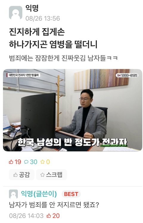 한남들 득달같이 몰려온거 봐라ㅋㅋㅋㅋㅌ 범죄자새키들